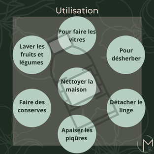 Nettoyer les légumes : il enleve les bactéries en profondeur et élimine les petits insectes. On fait tremper quelques minutes les légumes dans de l'eau vinaigrée, on rince et c'est prêt !